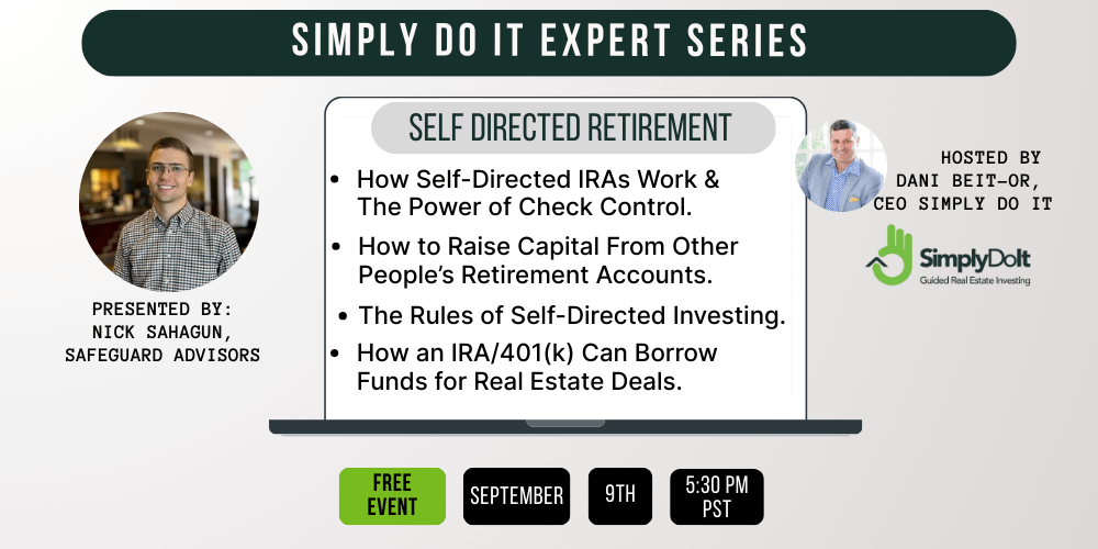 Nick Sahagun, Self-Directed Retirement Specialist from Safeguard Advisors, is joining us for our next educational class: “Tax Sheltered Real Estate Investing, with your Retirement Funds.”