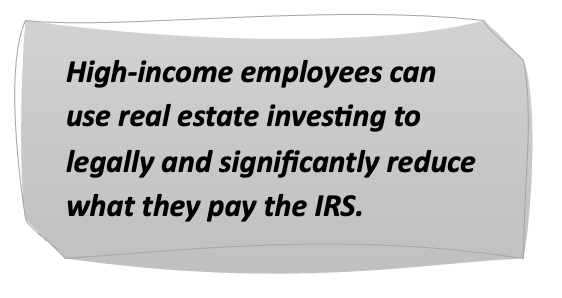 Here’s what got their attention: High-income employees can use real estate investing to legally and significantly reduce what they pay the IRS.